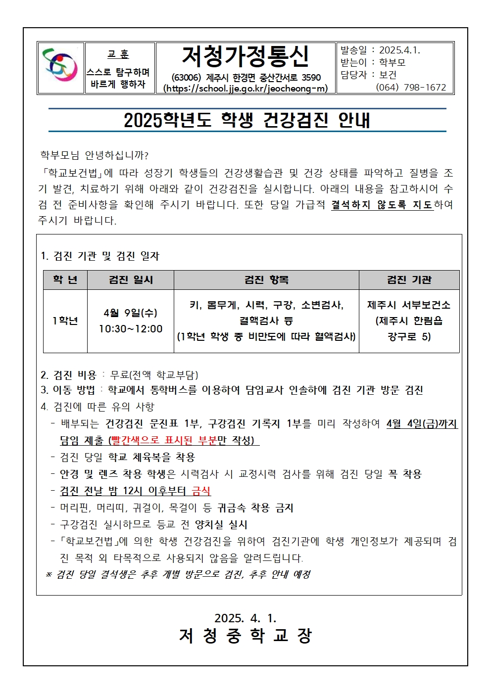 [제주특별자치도교육청 가정통신문] 일본뇌염 주의보 발령에 따른 모기물림 예방수칙 안내