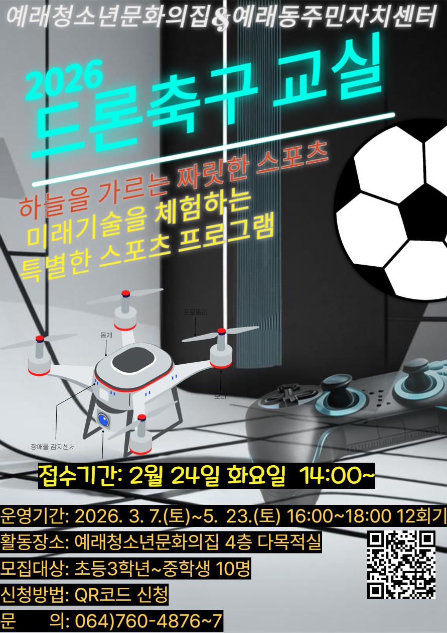 예래청소년문화의집 3월 드론축구교실 프로그램 모집 안내