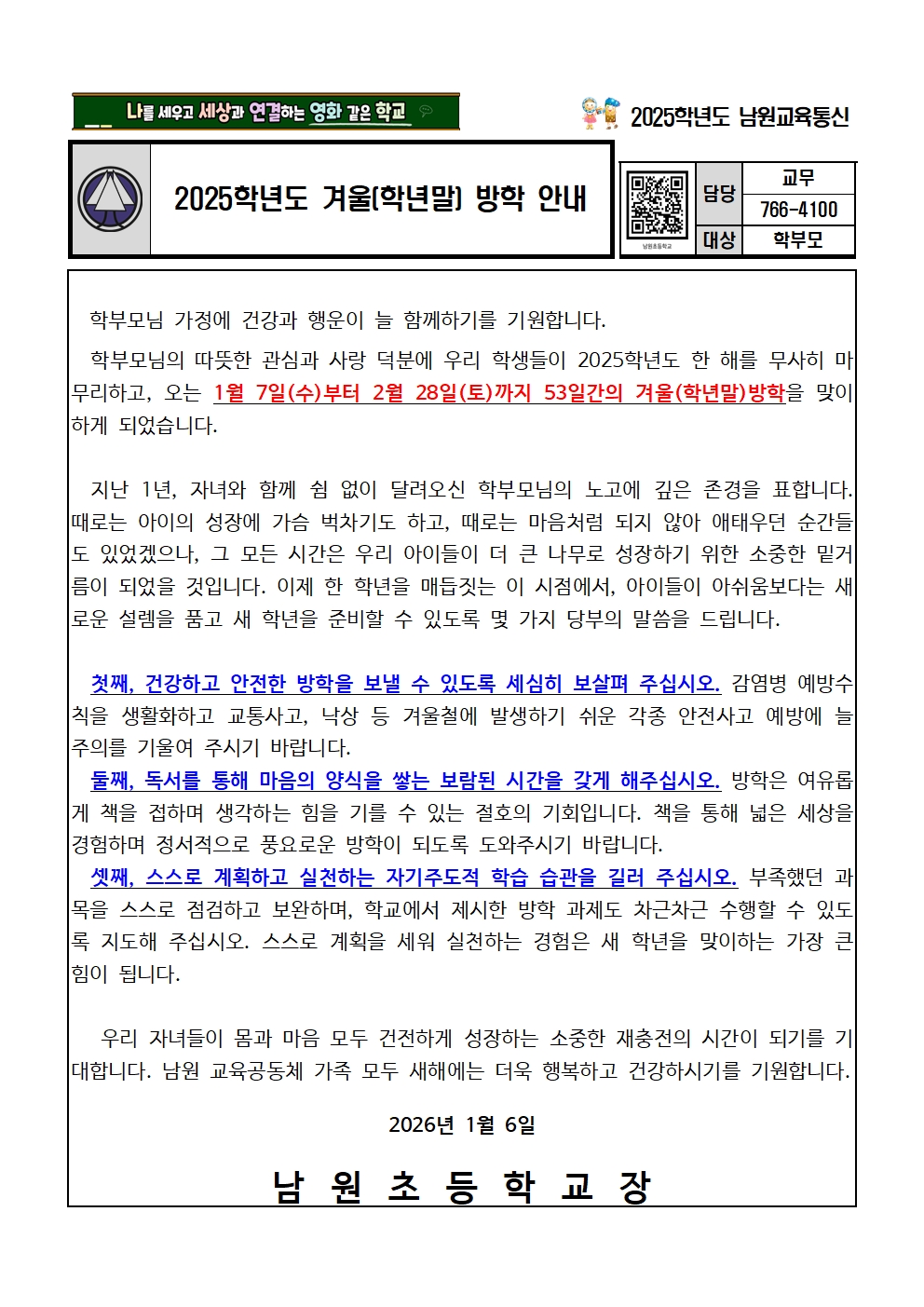 [동녘도서관 가정통신문] 2026년 1월 <책커피음악> 운영 홍보