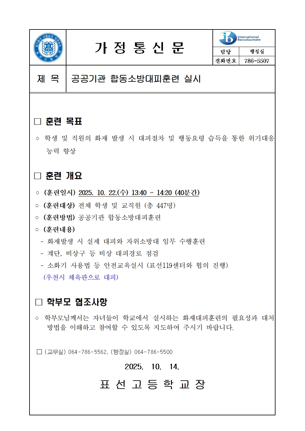 공공기관 합동소방대피훈련 실시에 따른 안내사항
