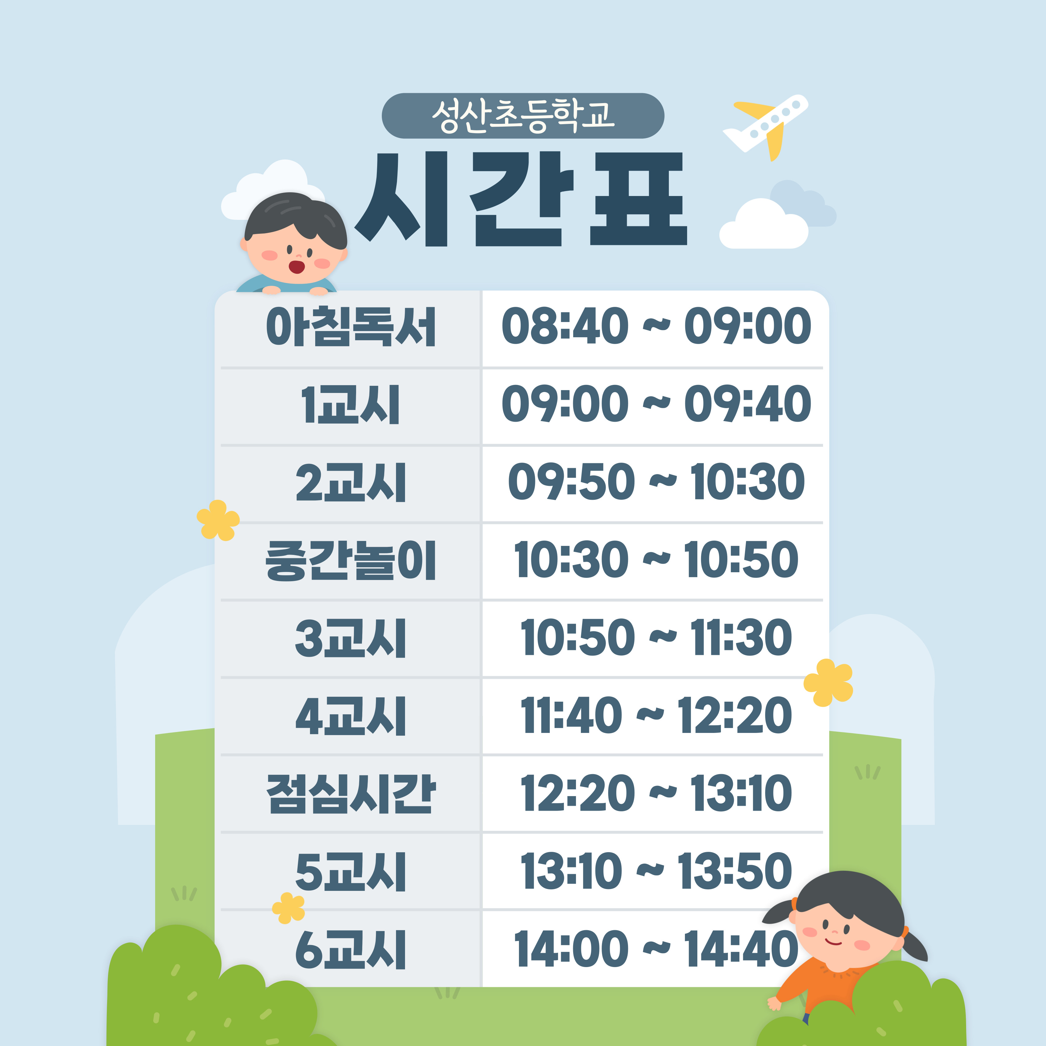 2026학년도 성산초등학교 일일시정표