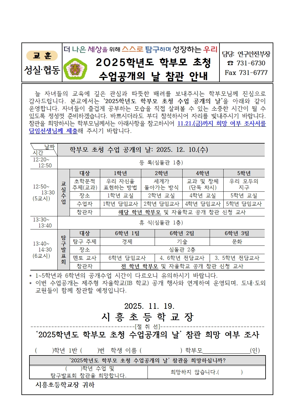 2025학년도 학부모 초청 수업공개의 날 참관 안내