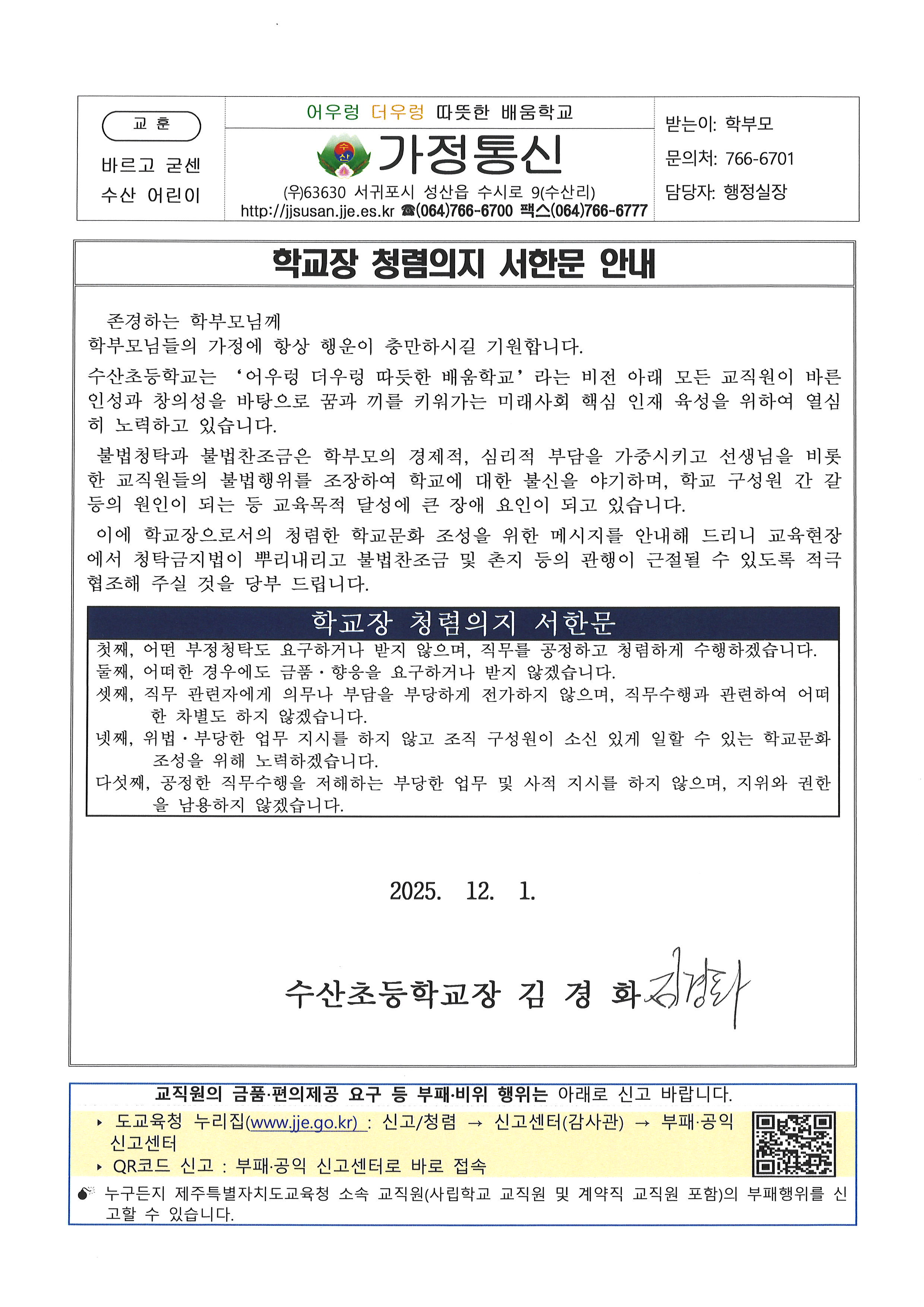학부모 대상 재난안전 인식도 진단 실시 안내