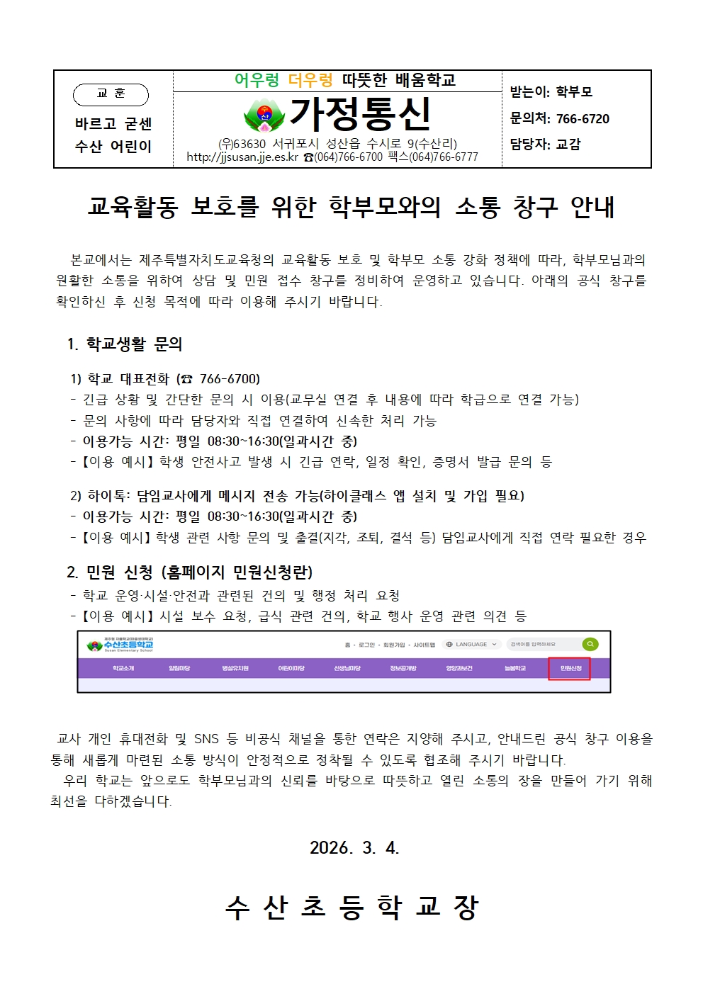 교육활동보호를 위한 학부모와의 소통 창구 안내