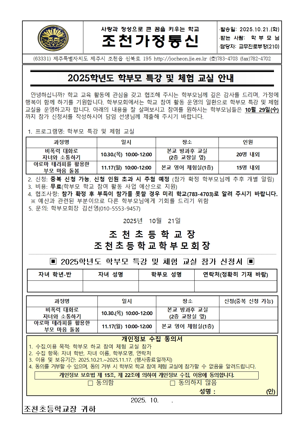 2025학년도 학부모 특강 및 체험 교실 안내