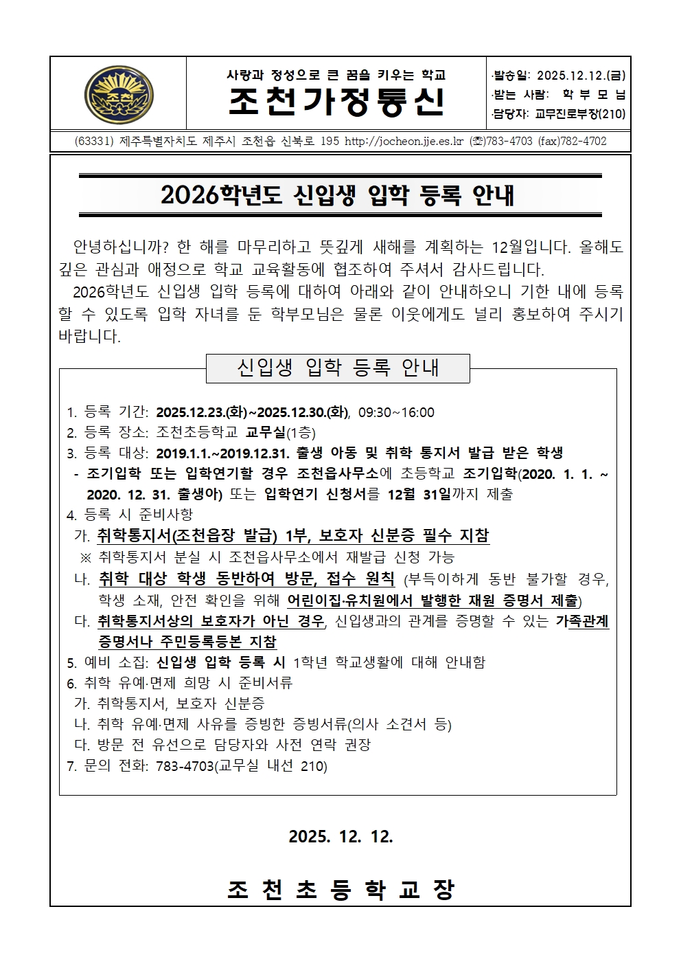 2026학년도 신입생 입학 등록 안내