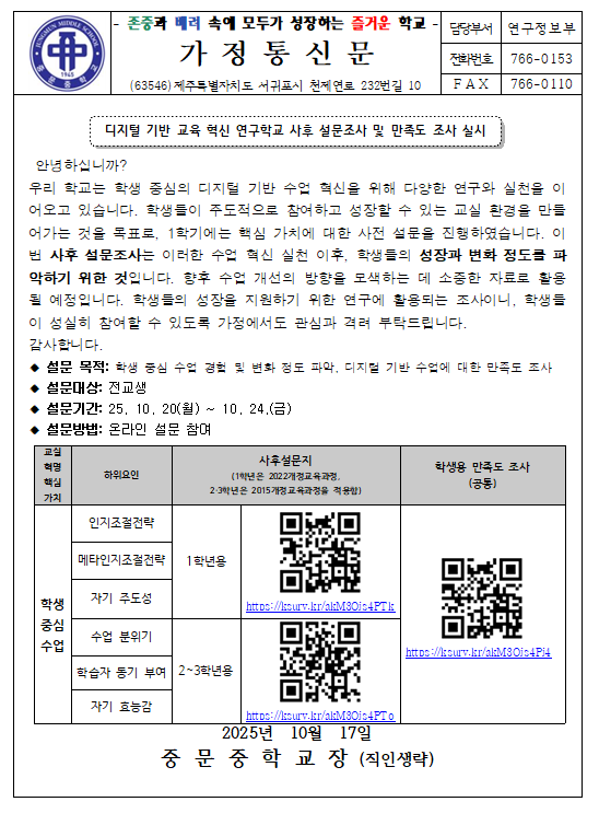 2025학년도 디지털 기반 교육 혁신 연구학교 사후 설문조사 및 만족도 조사 실시