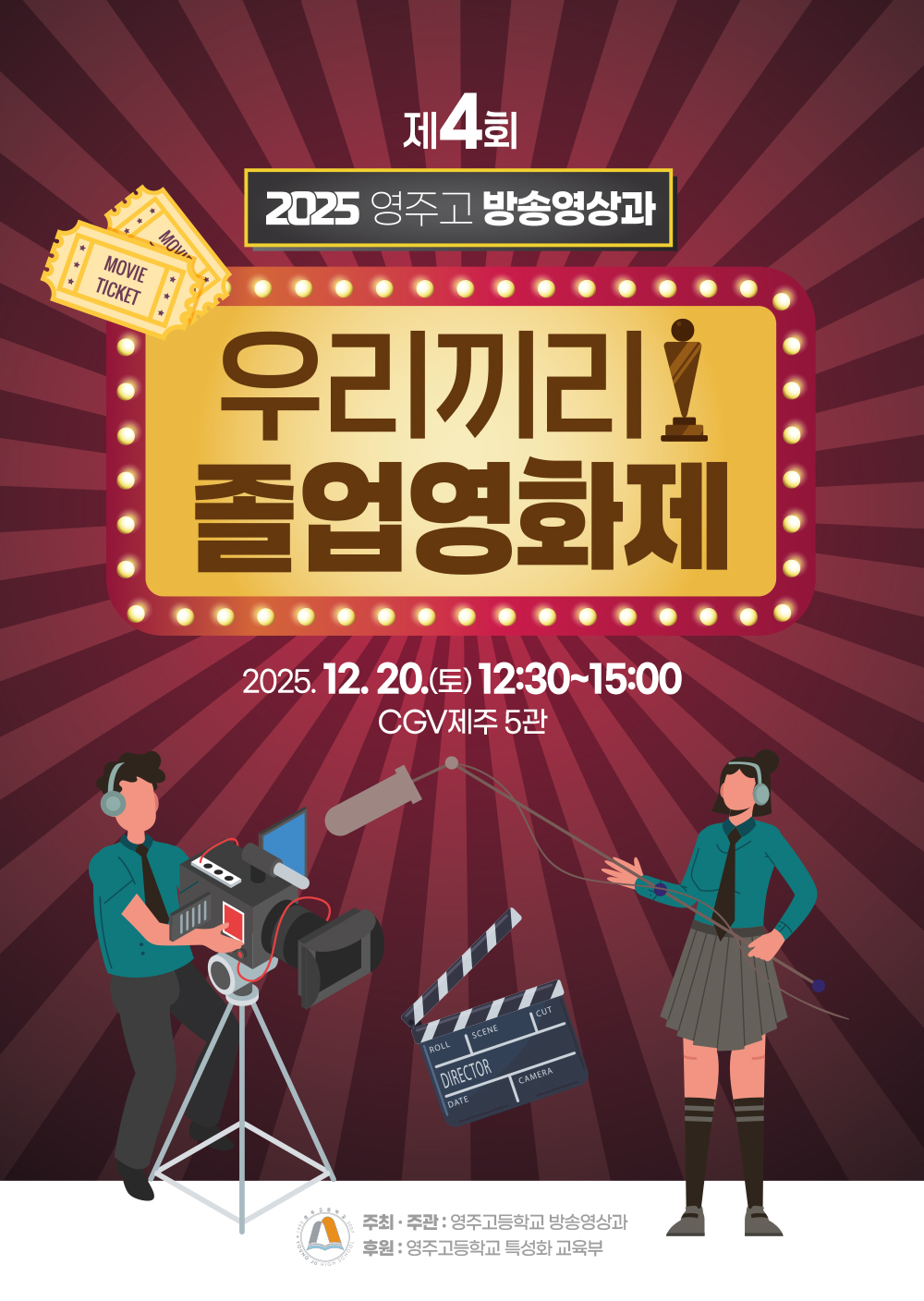 2025년 영주고등학교 제4회 방송영상과 졸업영화제를 개최하오니 우리학교 학생들은 많이 참석하여 즐거운 시간이 되었으면 합니다.