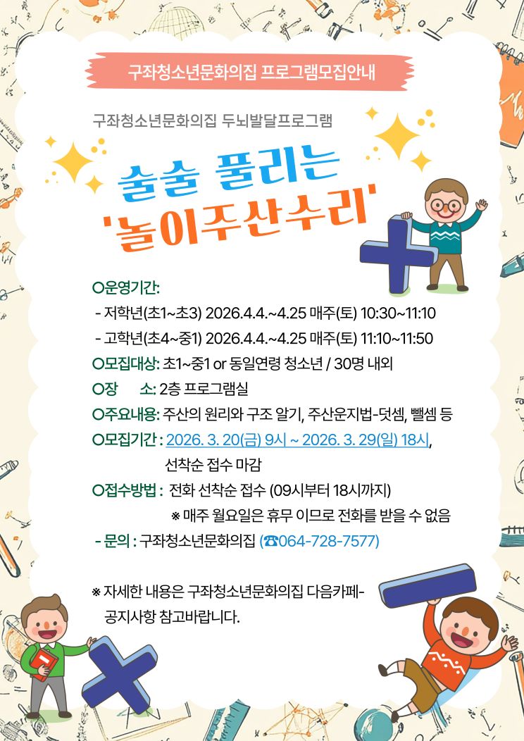 2026 구좌청소년문화의집 "놀이주산수리" 프로그램 참가 안내