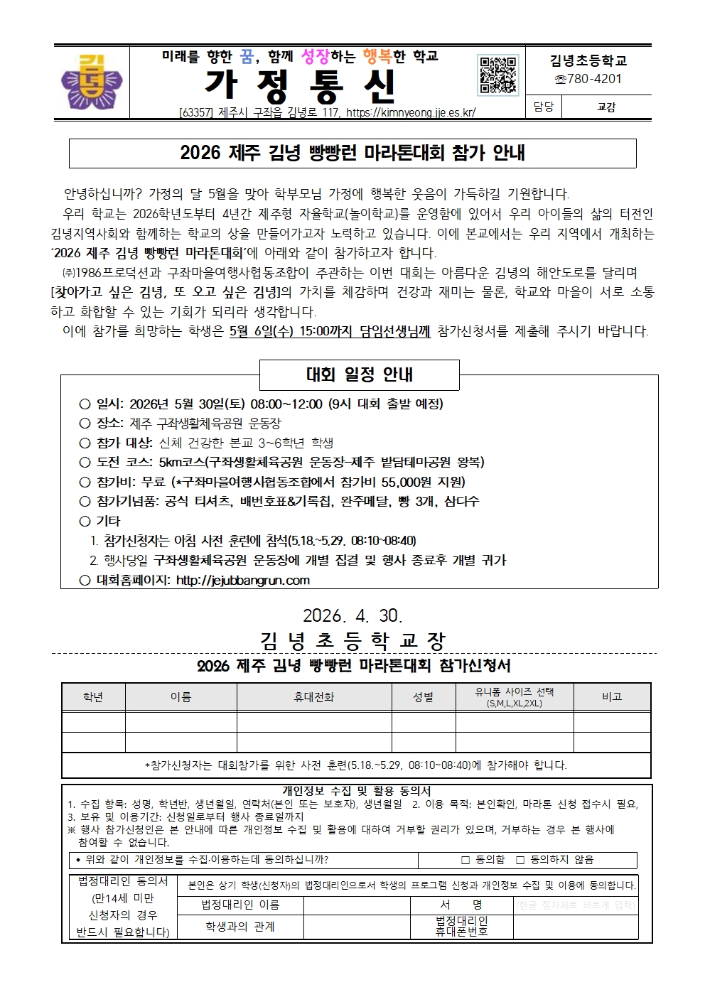 2026 제주 김녕빵빵런 마라톤 대회 참가 안내