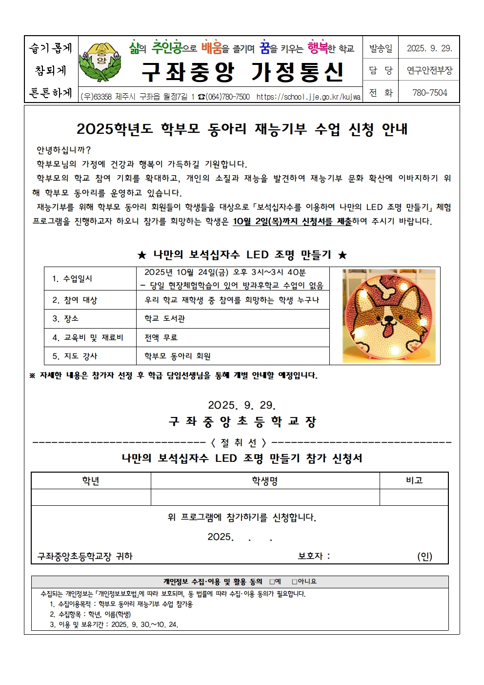 2025학년도 학부모 동아리 재능기부 수업 신청 안내