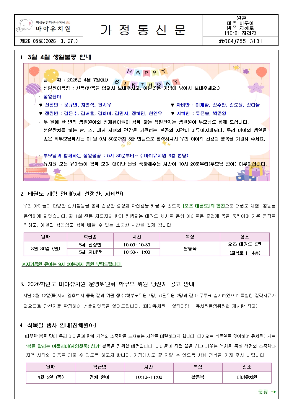 2026-5호 가정통신문입니다. (3. 27)