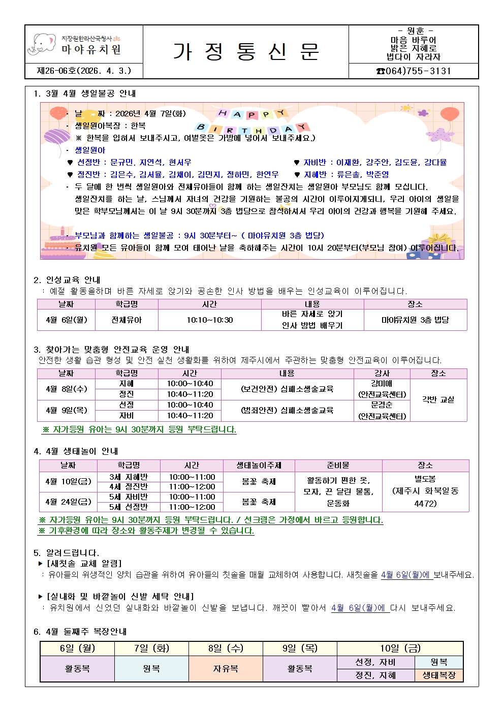 2026-6호 가정통신문입니다. (4. 3)