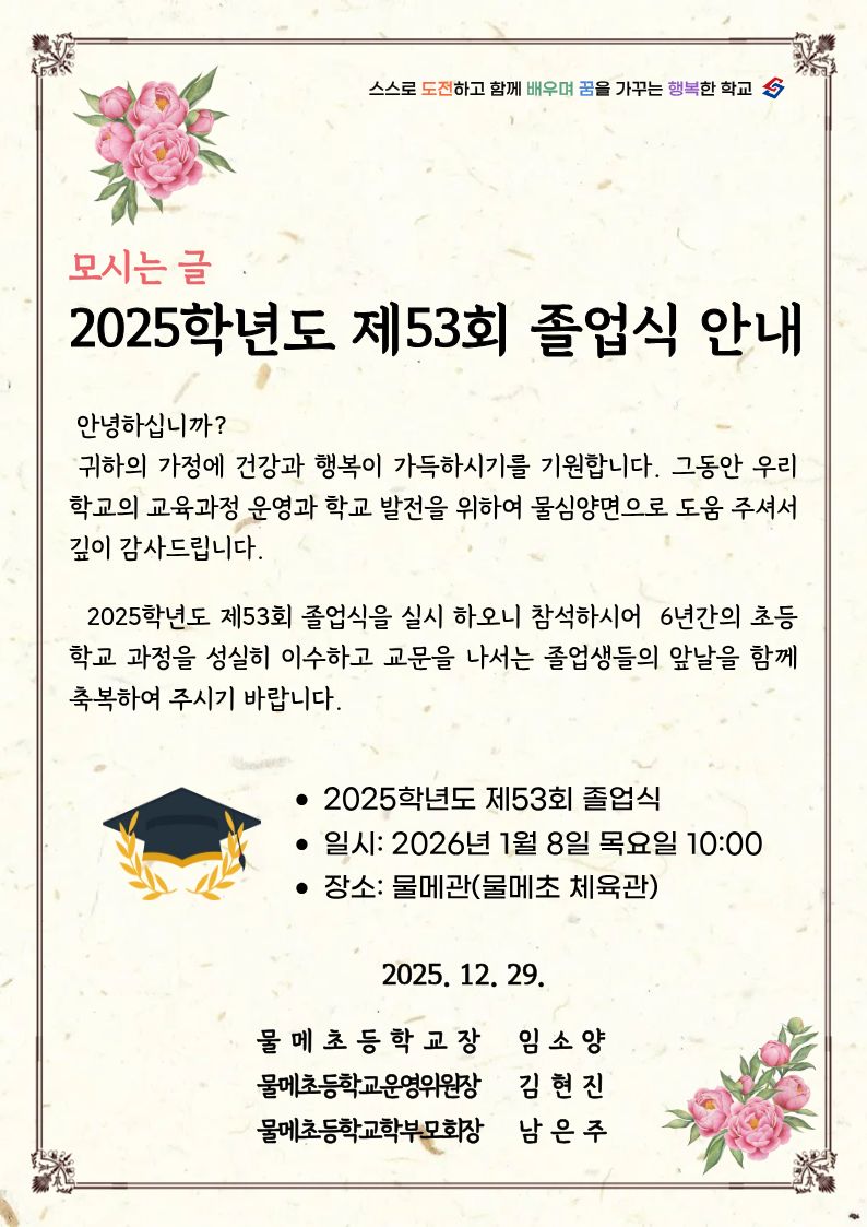 2025학년도 제53회 졸업식 안내