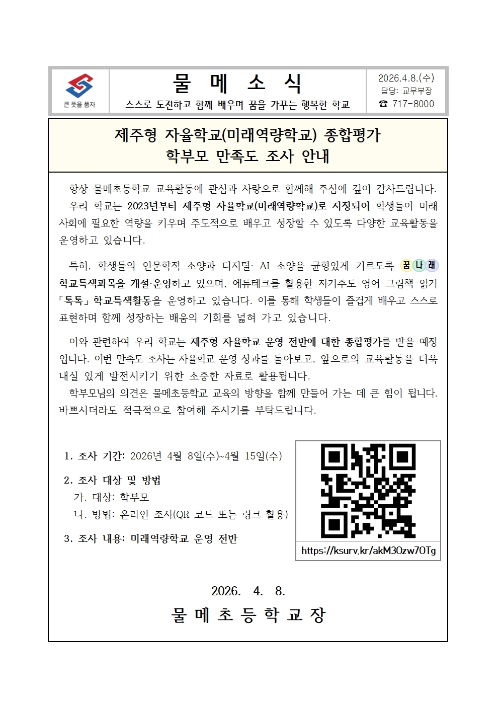 ● 만족도 조사 링크(학부모용) https://ksurv.kr/akM3Ozw7OTg