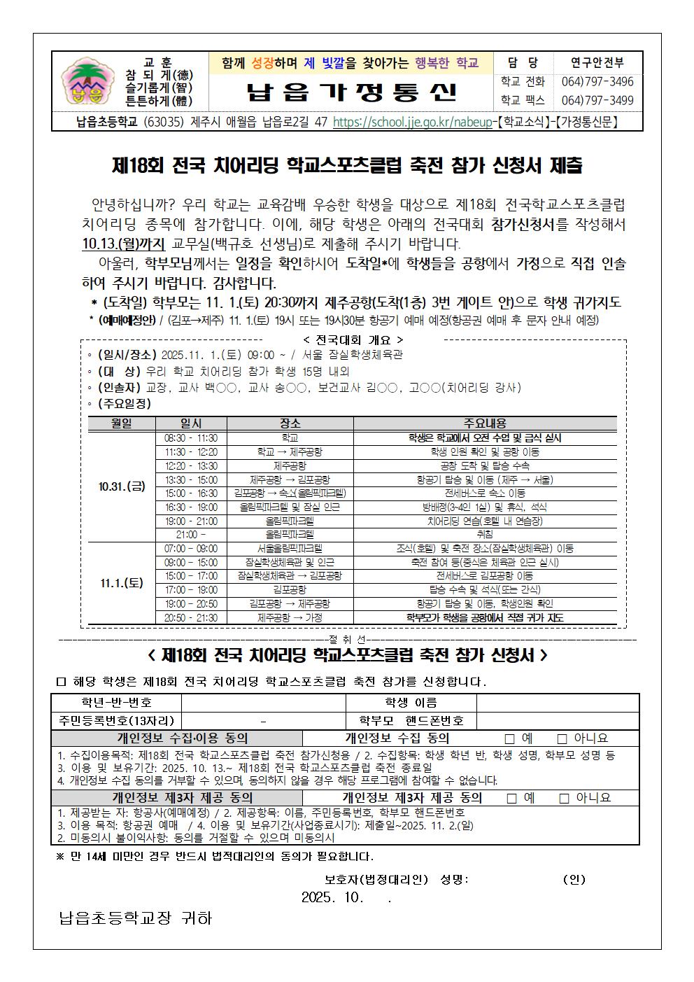 제18회 전국 치어리딩 학교스포츠클럽 축전 참가 신청서 제출