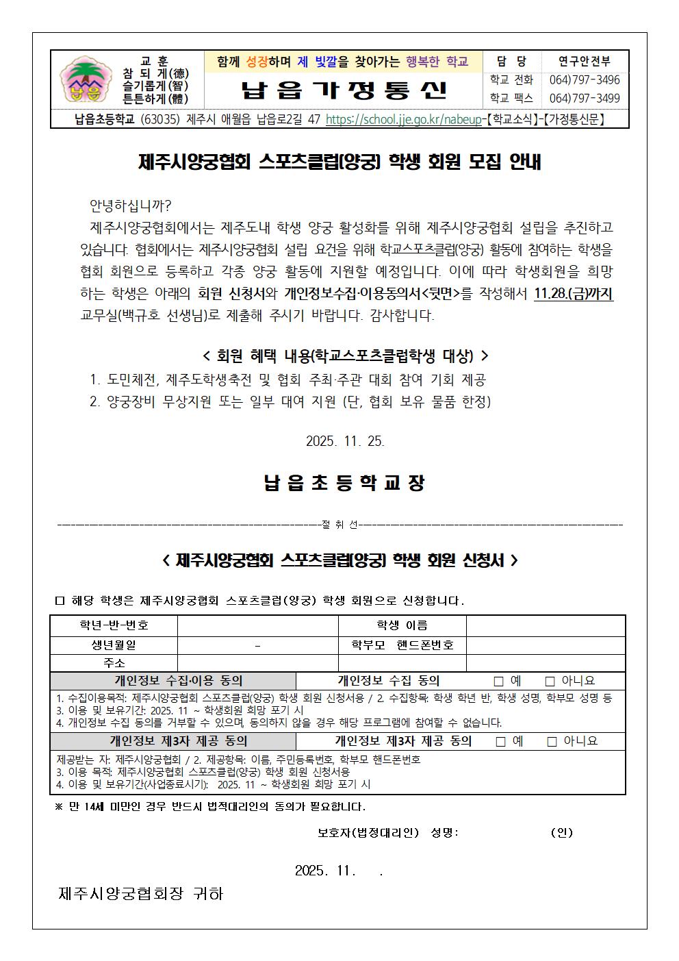 (가정통신문) 제주시양궁협회 스포츠클럽(양궁) 학생 회원 모집 안내.hwp