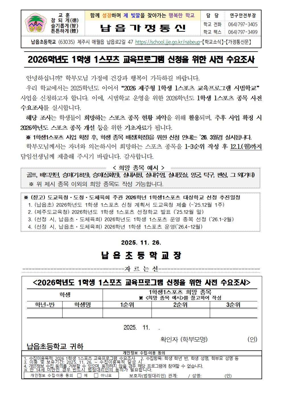 2026학년도 1학생 1스포츠 교육프로그램 신청을 위한 사전 수요조사
