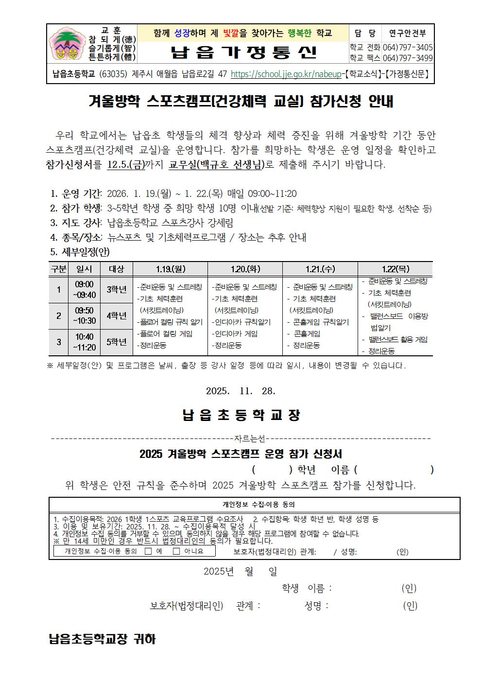 2025 겨울방학 스포츠캠프(건강체력 교실) 참가신청 안내.hwp