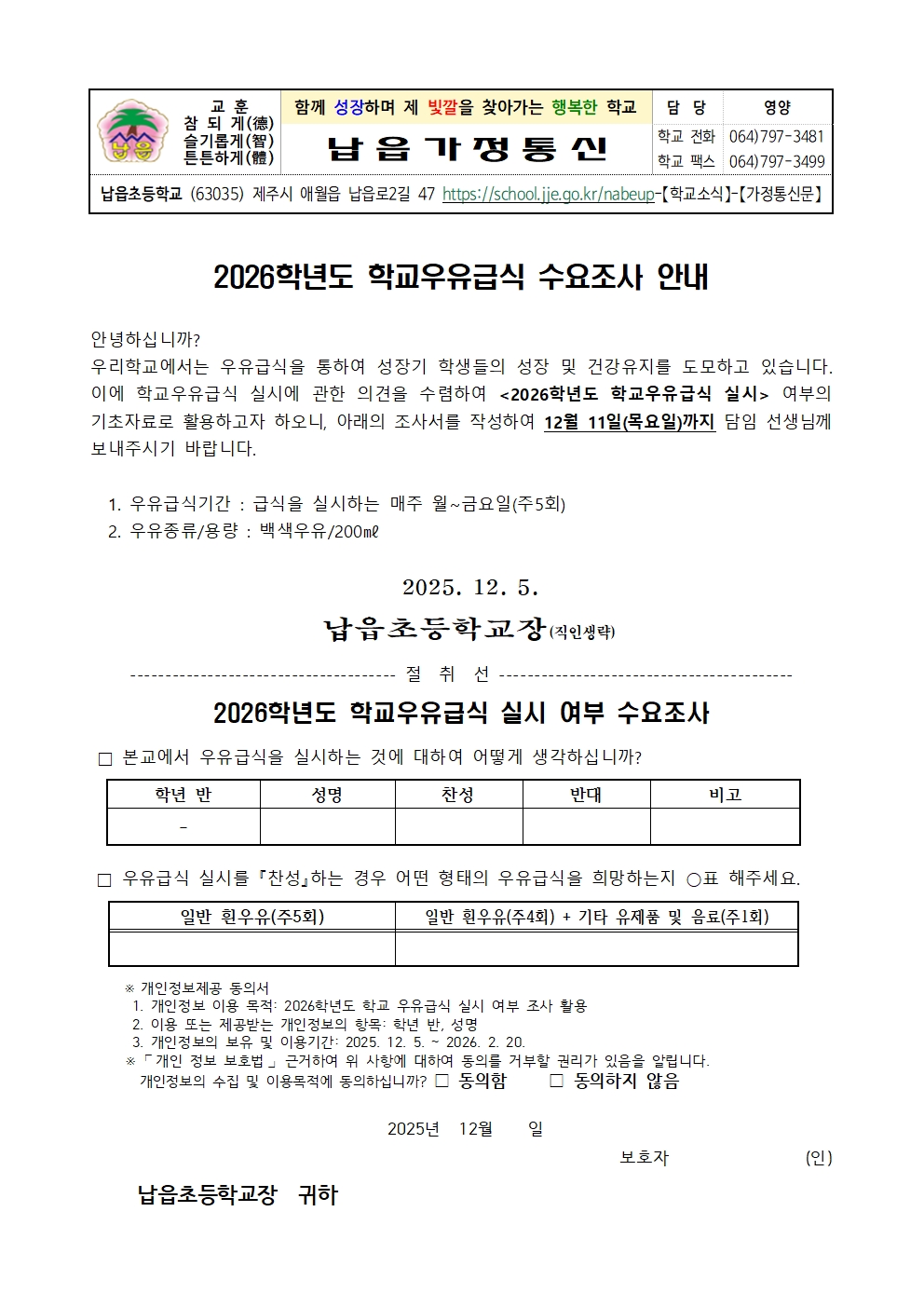 2026학년도 학교우유급식 수요조사 안내문(납읍초).hwp