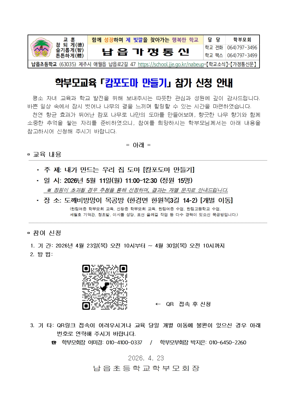 가정통신문_학부모교육 캄포도마 만들기 20260423.hwp