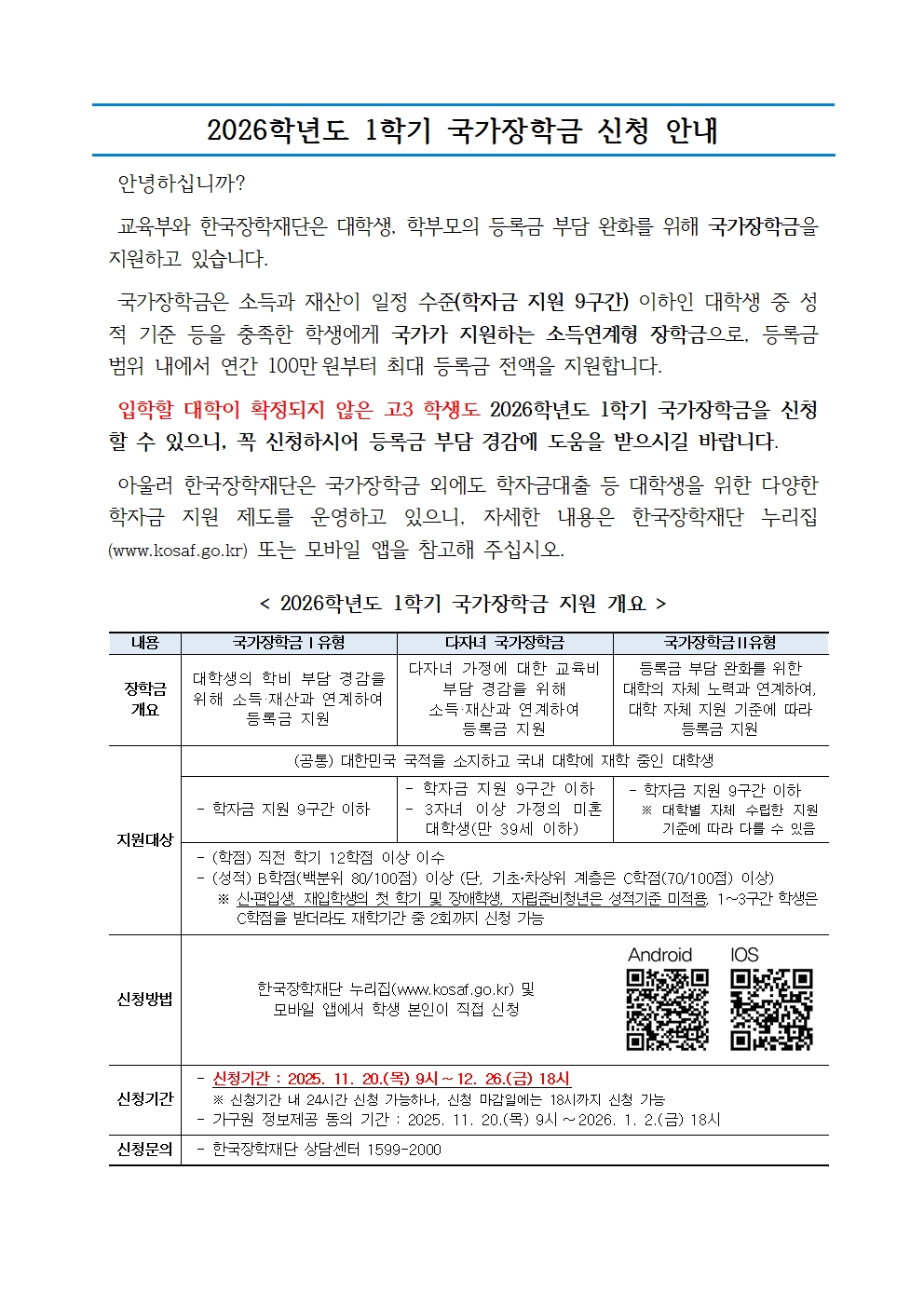 [안내] 2026학년도 1학기 국가장학금 신청 안내