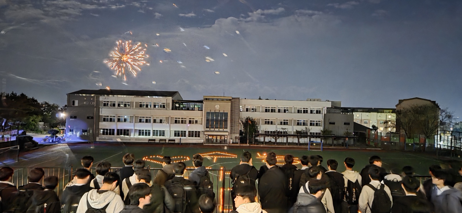 보름달 빛이 가득한 저녁 8시. 운동장에서 수능을 앞둔 3학년 학생들을 위한 촛불 응원 행사가 열렸다. 학생자치회 임원들이 주축이 된 1·2학년 학생들은 촛불로 응원 문구를 만들어 선배들에게 직접 감동적인 응원의 메시지를 전달했다. 자기주도학습 마지막 날을 맞이한 3학년 학생들에게 이번 촛불 응원은 선후배 간 따뜻한 유대감을 느낄 수 있는 특별한 경험이었다.