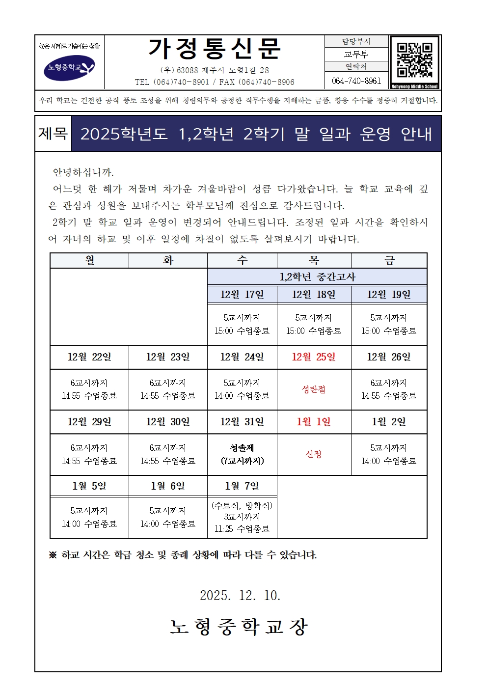 * 1월 7일(수료식)에는 급식을 제공하지 않습니다.