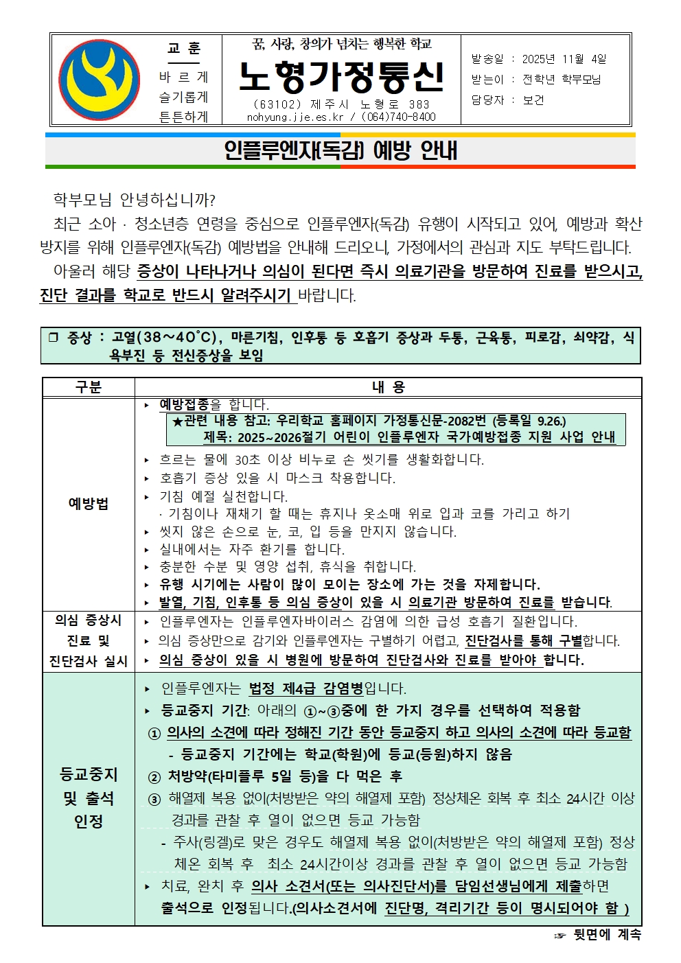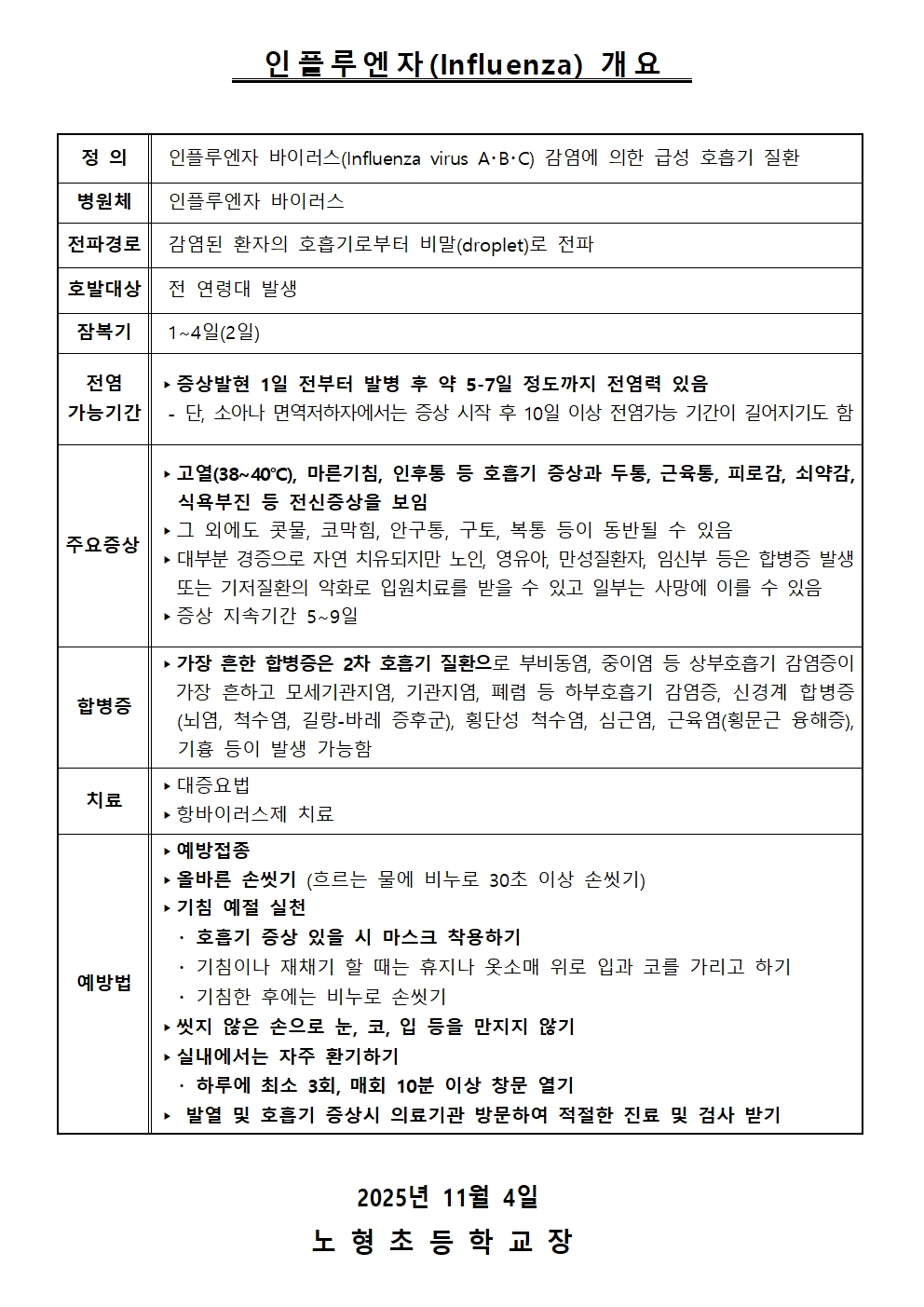 인플루엔자(독감) 예방 안내