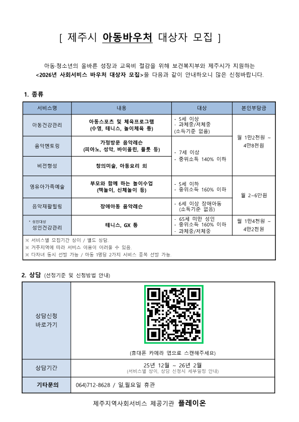 [홍보]제주시 아동바우처 대상자 모집 안내