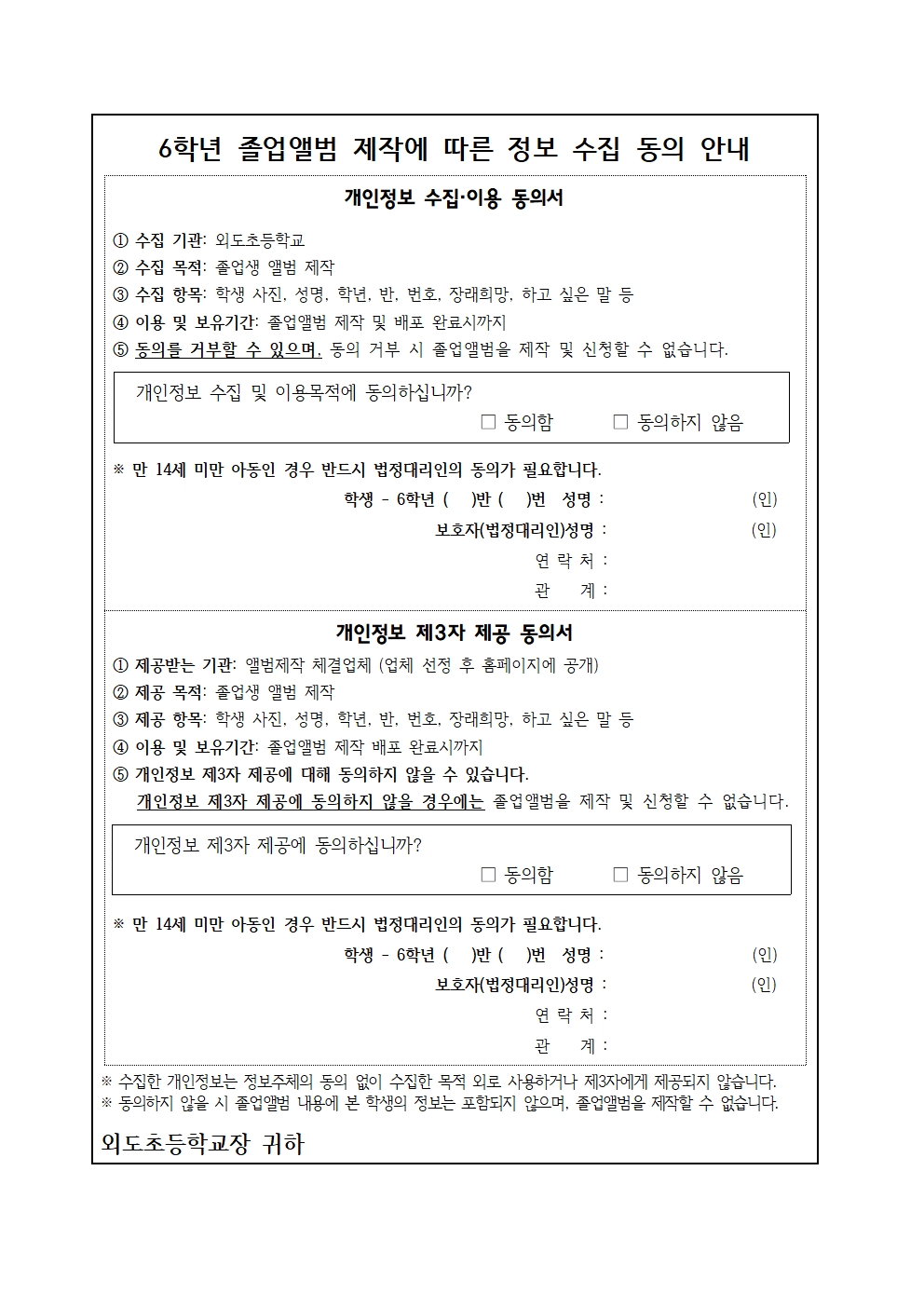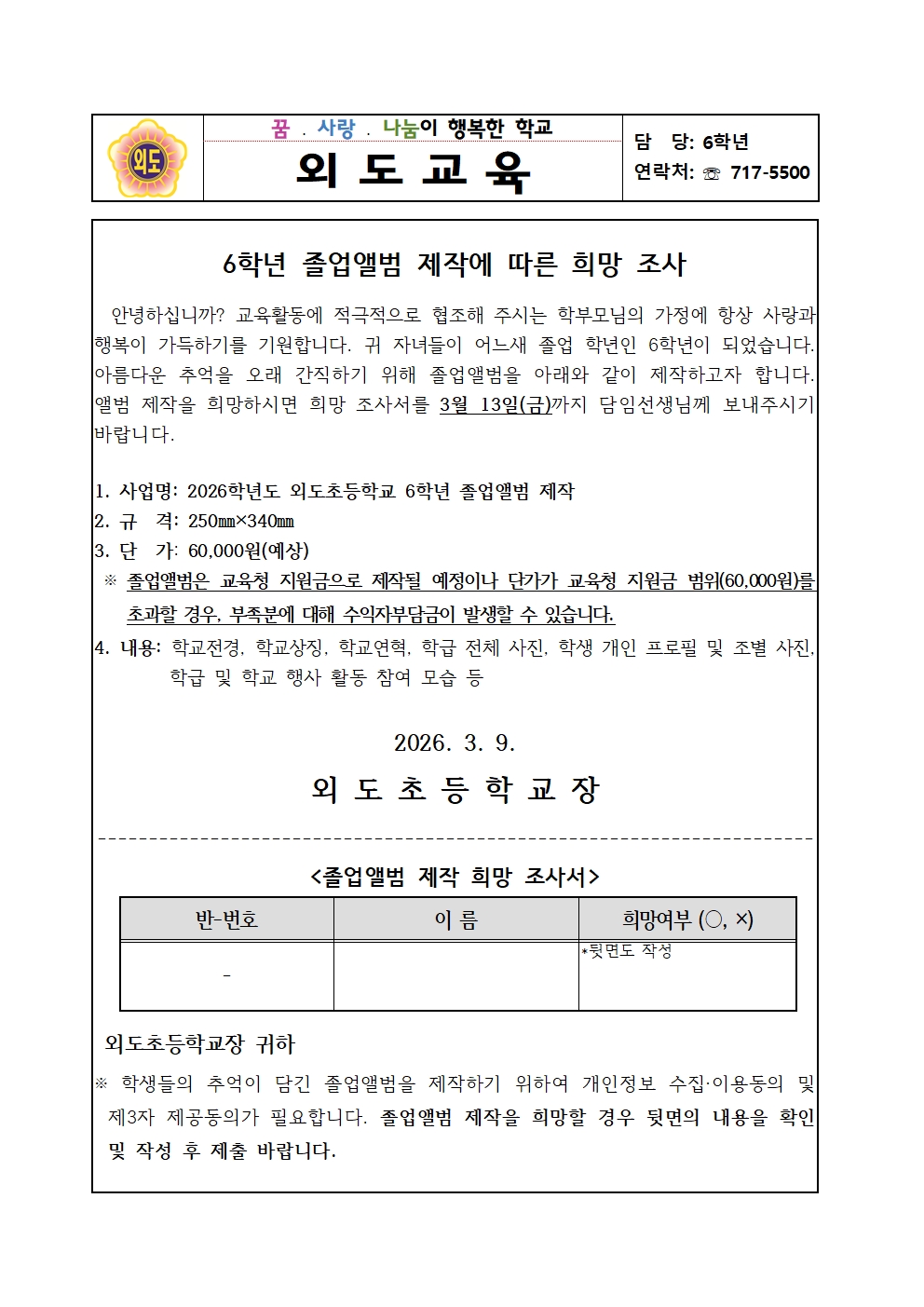 2026학년도 6학년 졸업앨범 제작에 따른 희망 조사