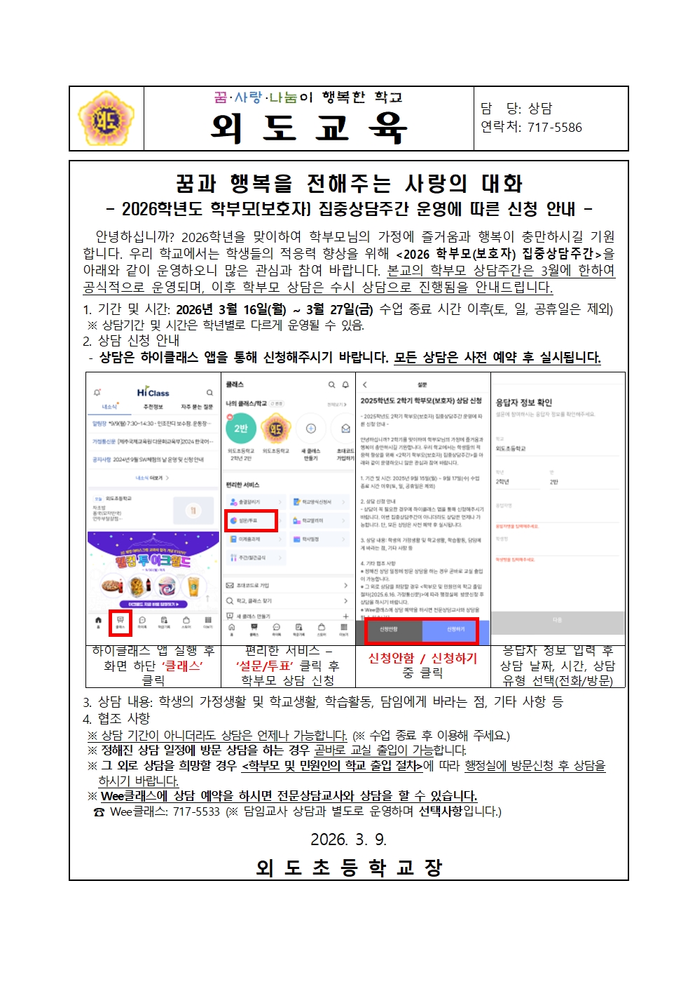 [가정통신문] 2026 학부모(보호자) 상담주간 안내