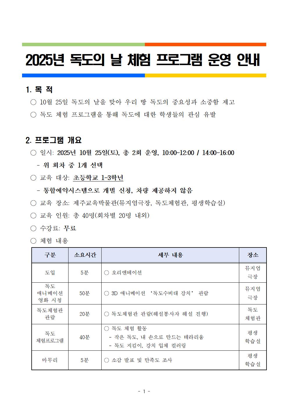 2025년 독도의 날 체험 프로그램 신청 안내(1,2,3학년)