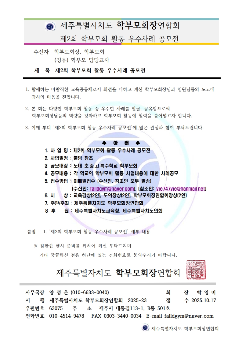 제2회 학부모회 활동 우수사례 공모전 안내