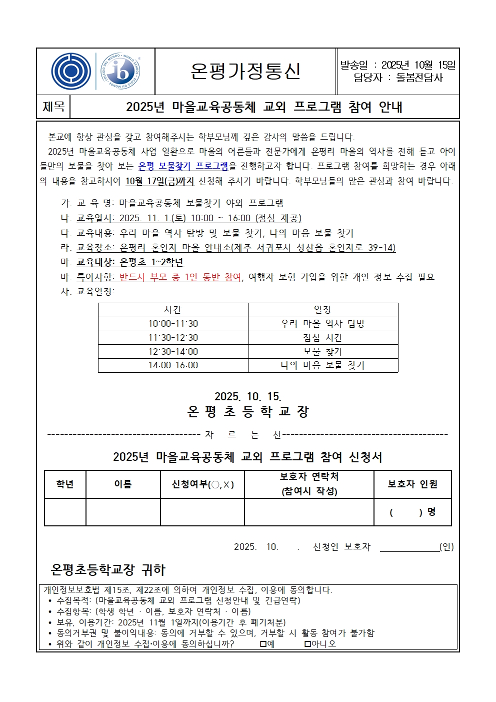2025년 마을교육공동체 교외 프로그램 참여 안내