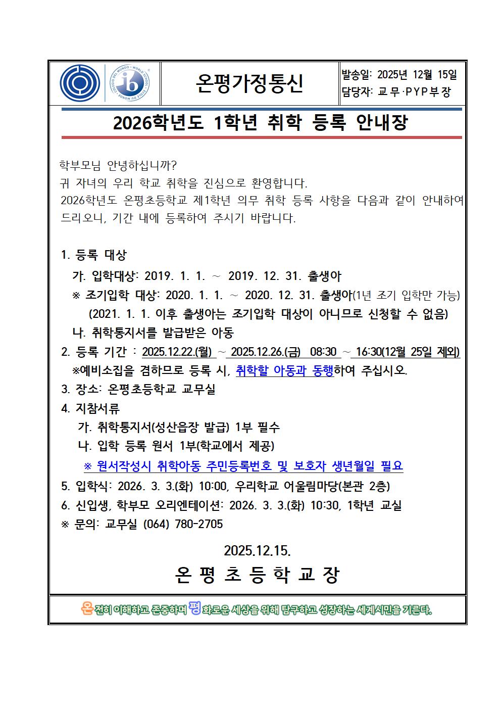 2026학년도 취학등록 안내