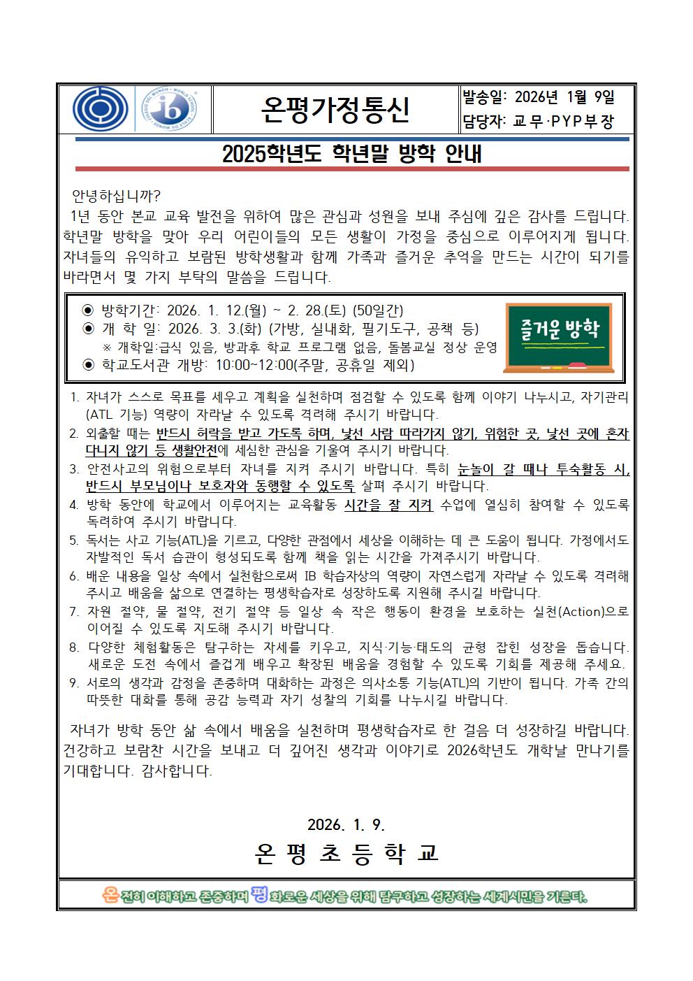 2025학년도 학년말 방학 안내