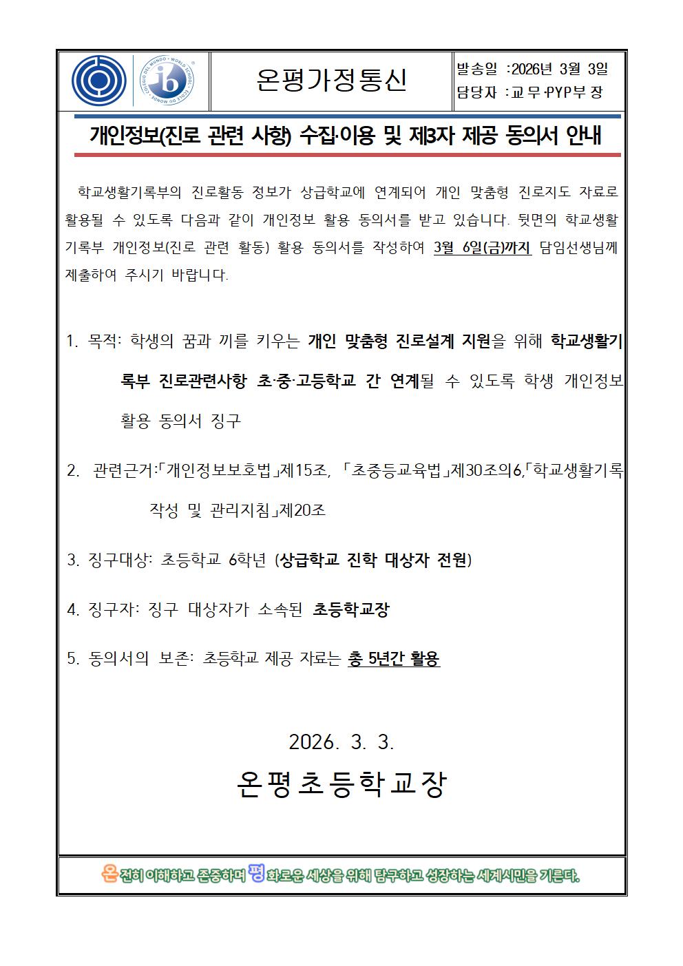 2026 개인정보(진로 관련사항) 수집 이용 제공 동의서_6학년 재학생