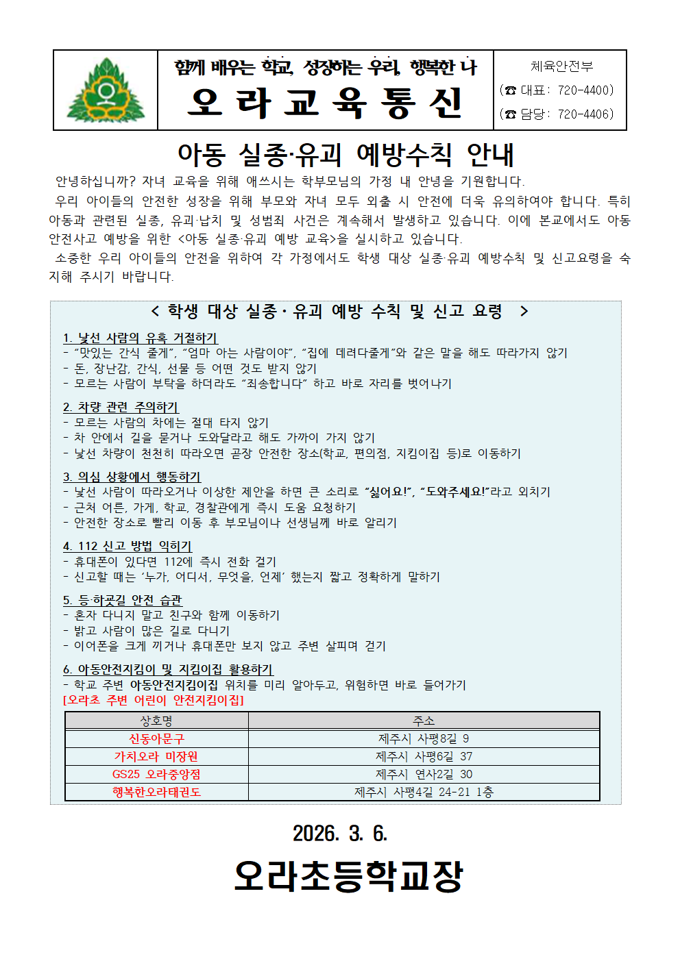 아동 실종·유괴 예방수칙 안내