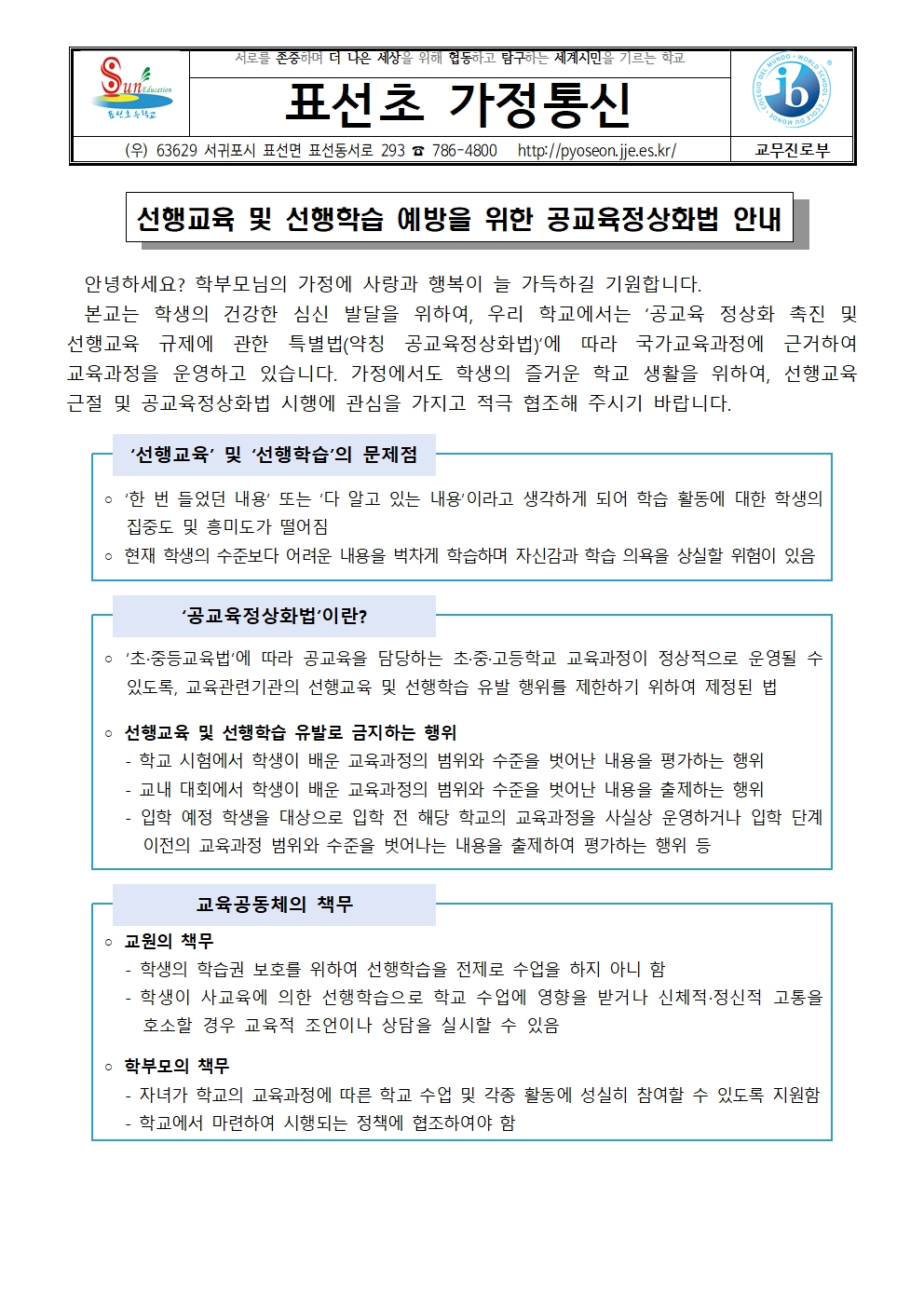 선행교육 및 선행학습 예방을 위한 공교육정상화법 안내