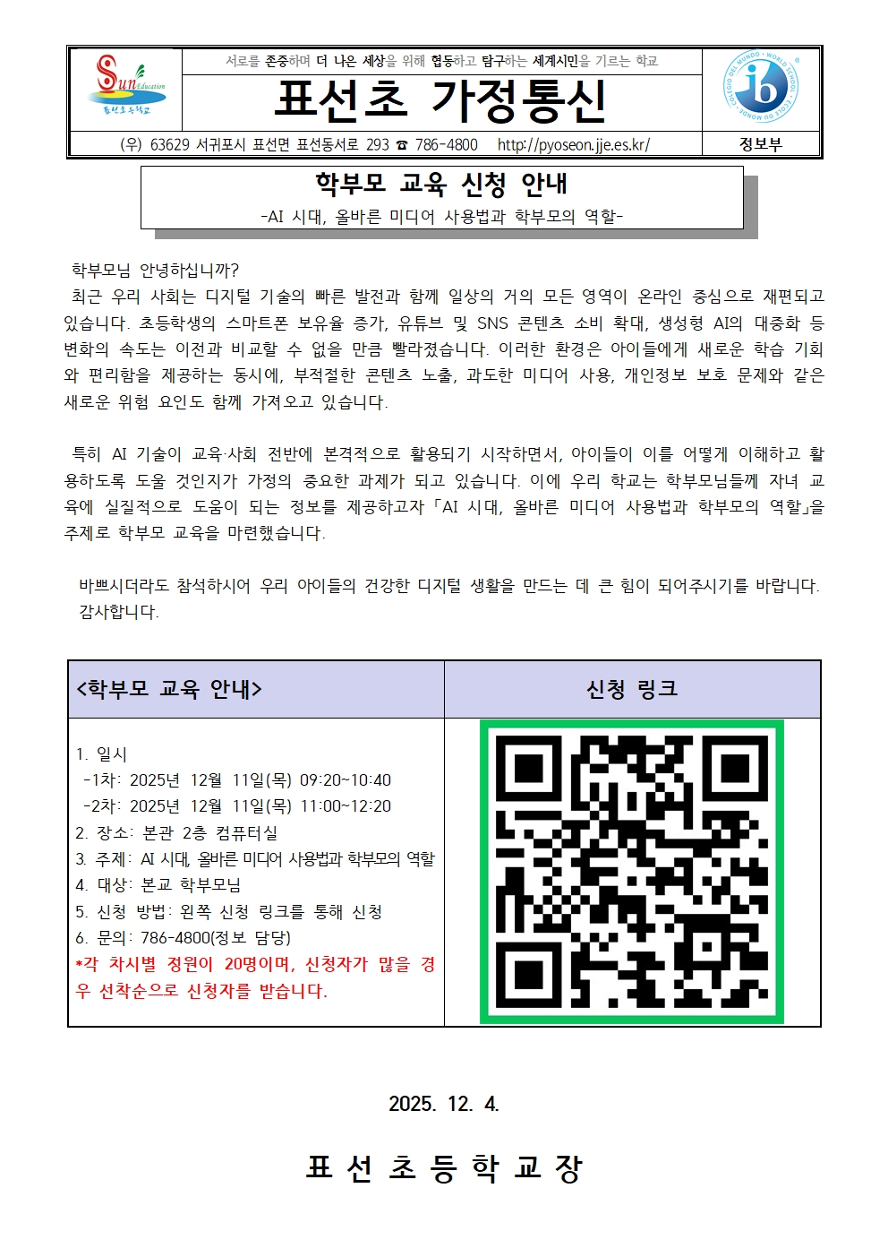 2025 찾아가는 학교컨설팅 학부모 교육 신청 안내
