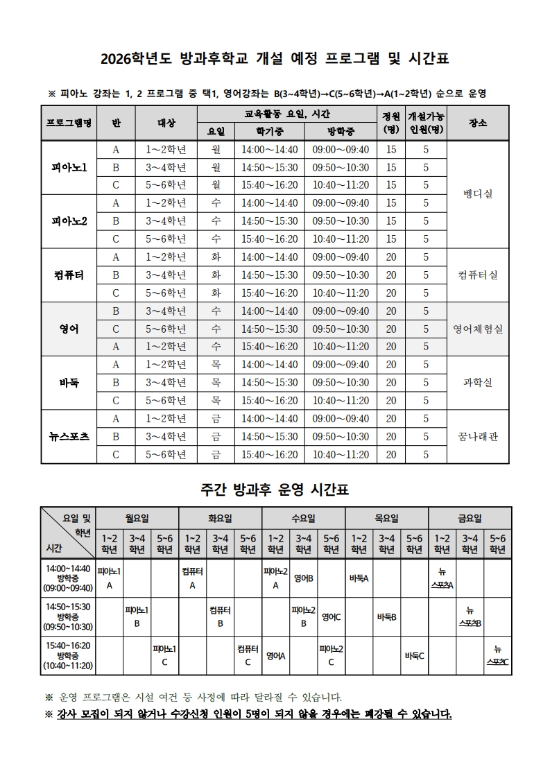2026학년도 방과후학교 1학기 수강 신청 안내(신입생)