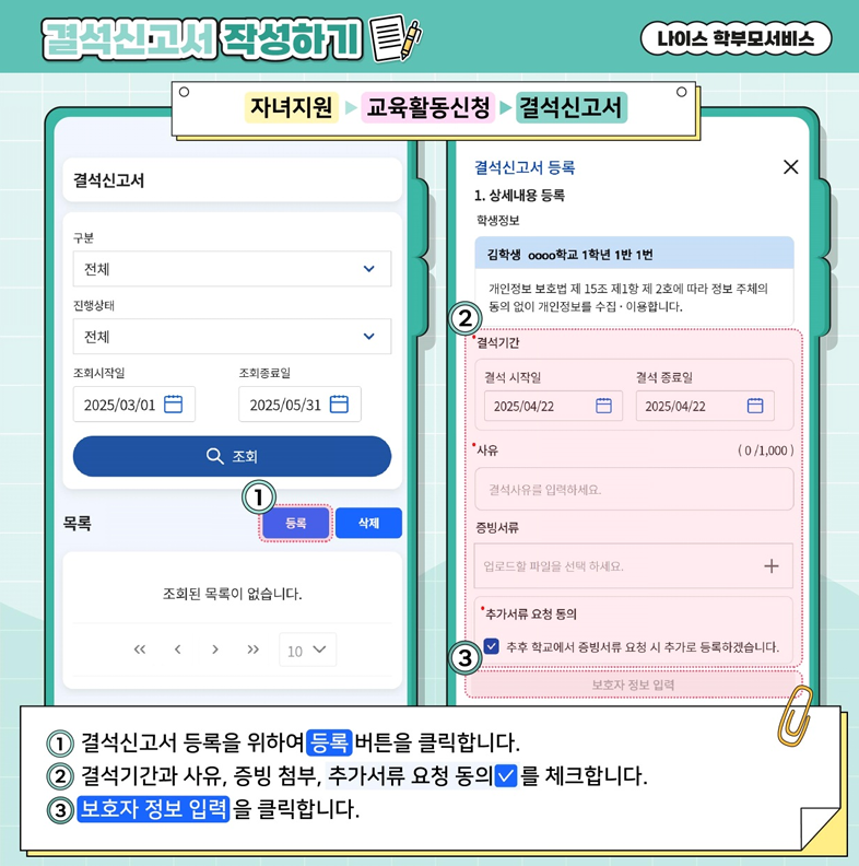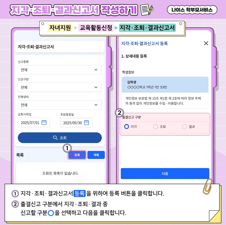 나이스 학부모 서비스 온라인 결석 신고 기능 개선 안내