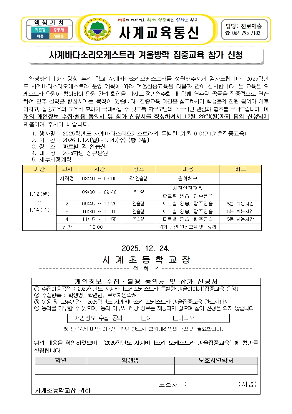2025학년도 사계바다소리오케스트라 겨울방학 집중교육 참가 신청 가정통신문.hwp
