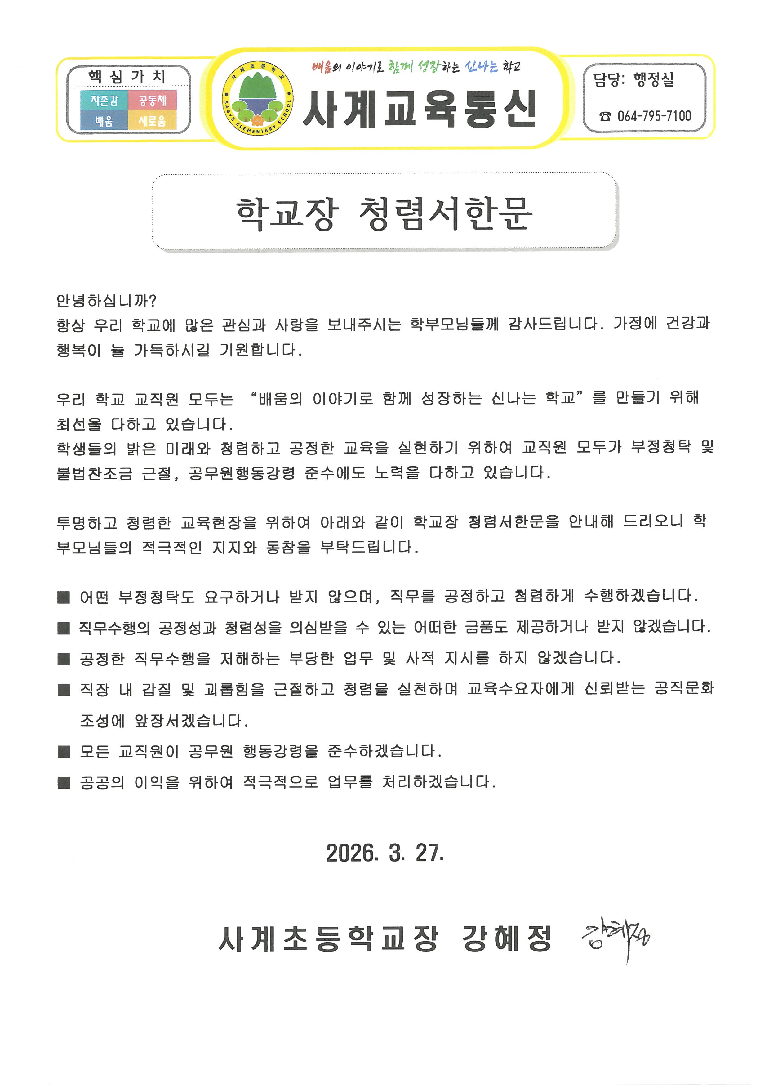 [제주특별자치도교육청 가정통신문] 학생 안전 관련 사건(가출, 실종, 유괴, 교통사고 등) 발생 시 대응 협조 가종통신문