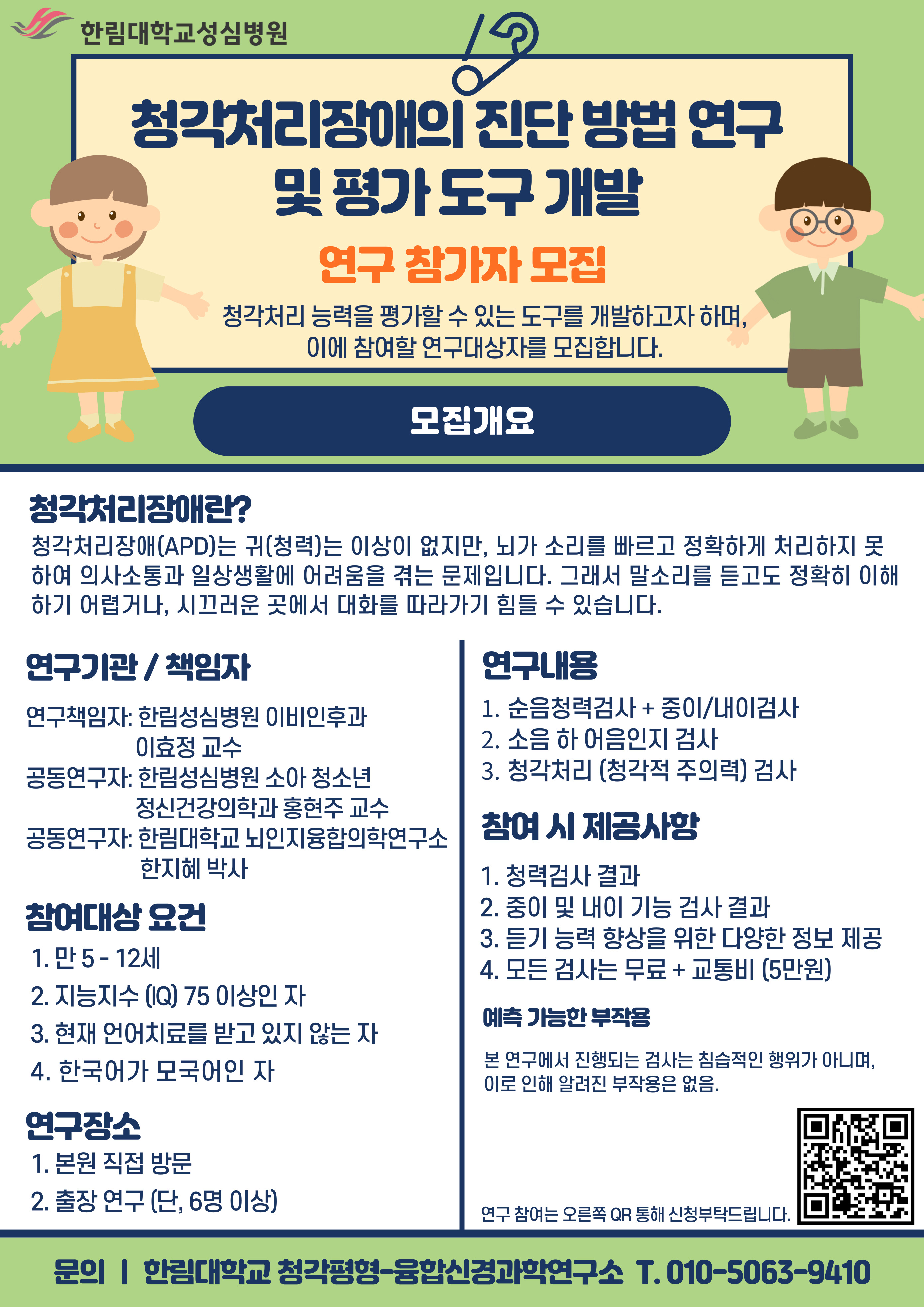 청각처리장애의 진단 방법 연구 및 평가 도구 개발 연구 참가자 모집 안내