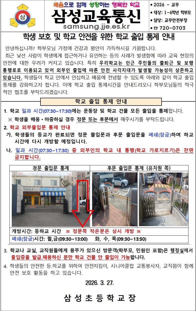 학생 보호 및 학교 안전을 위한 학교 출입 통제 안내