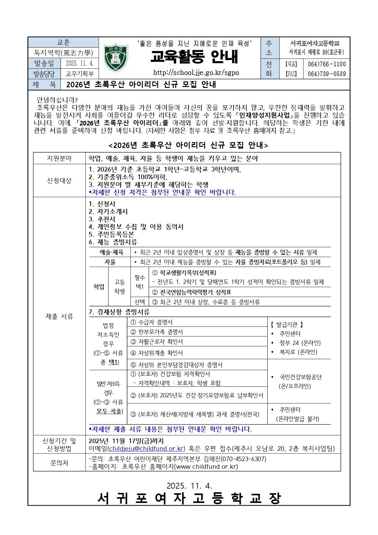 2026년 초록우산 아이리더 신규 모집 안내