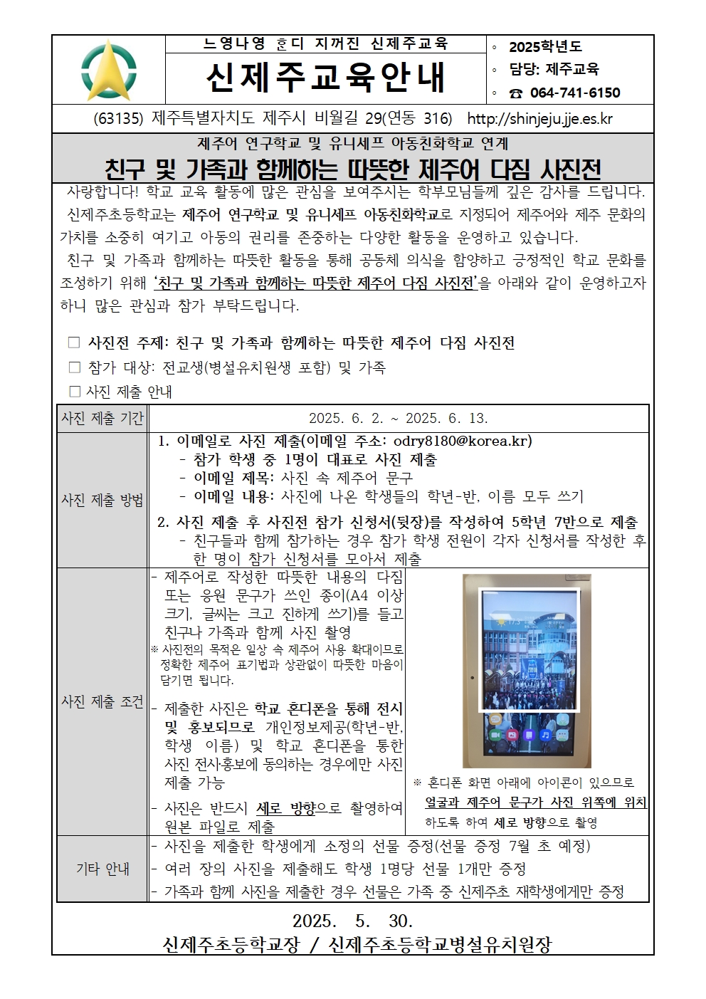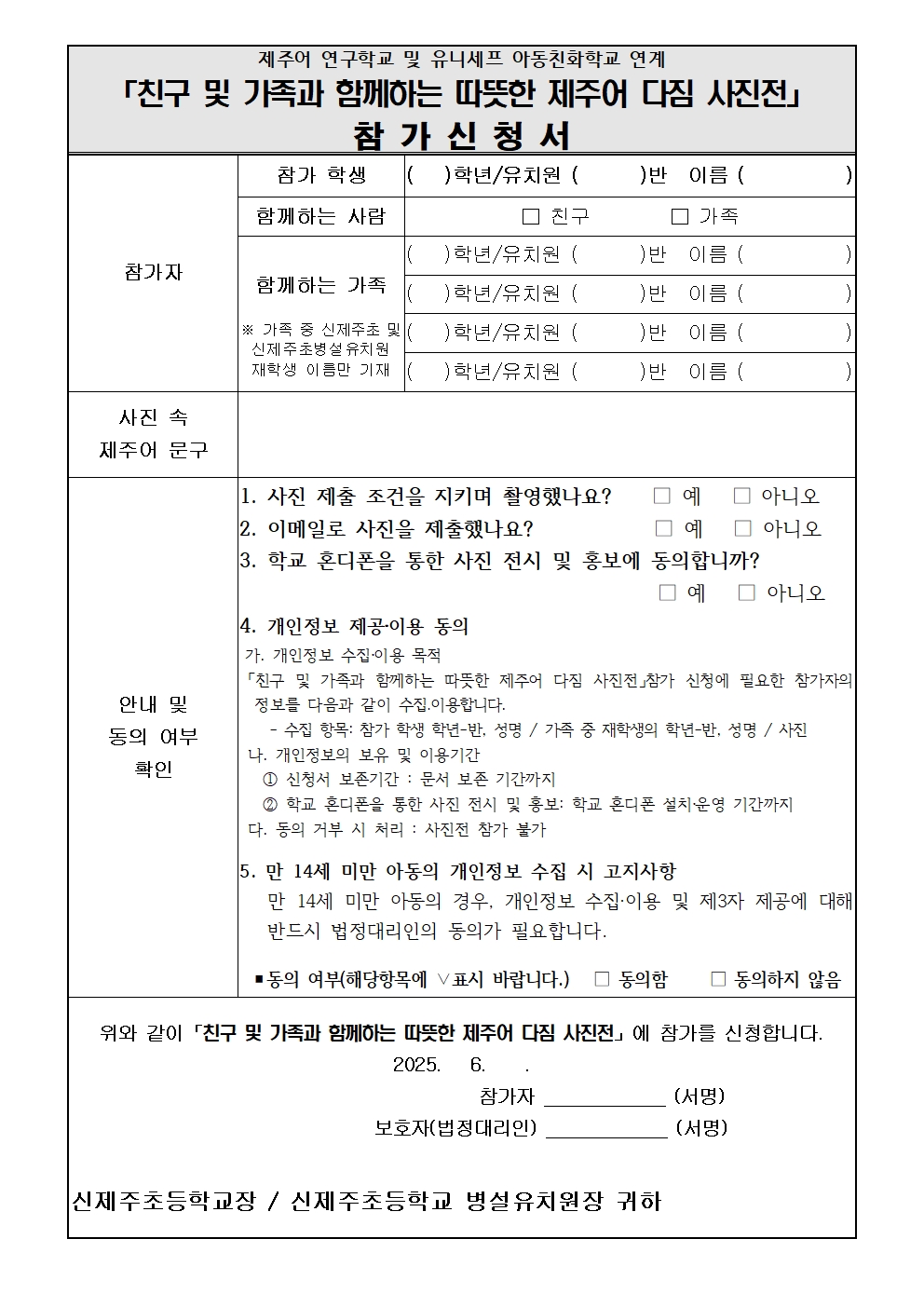 친구 및 가족과 함께하는 따뜻한 제주어 다짐 사진전 가정통신문.hwp