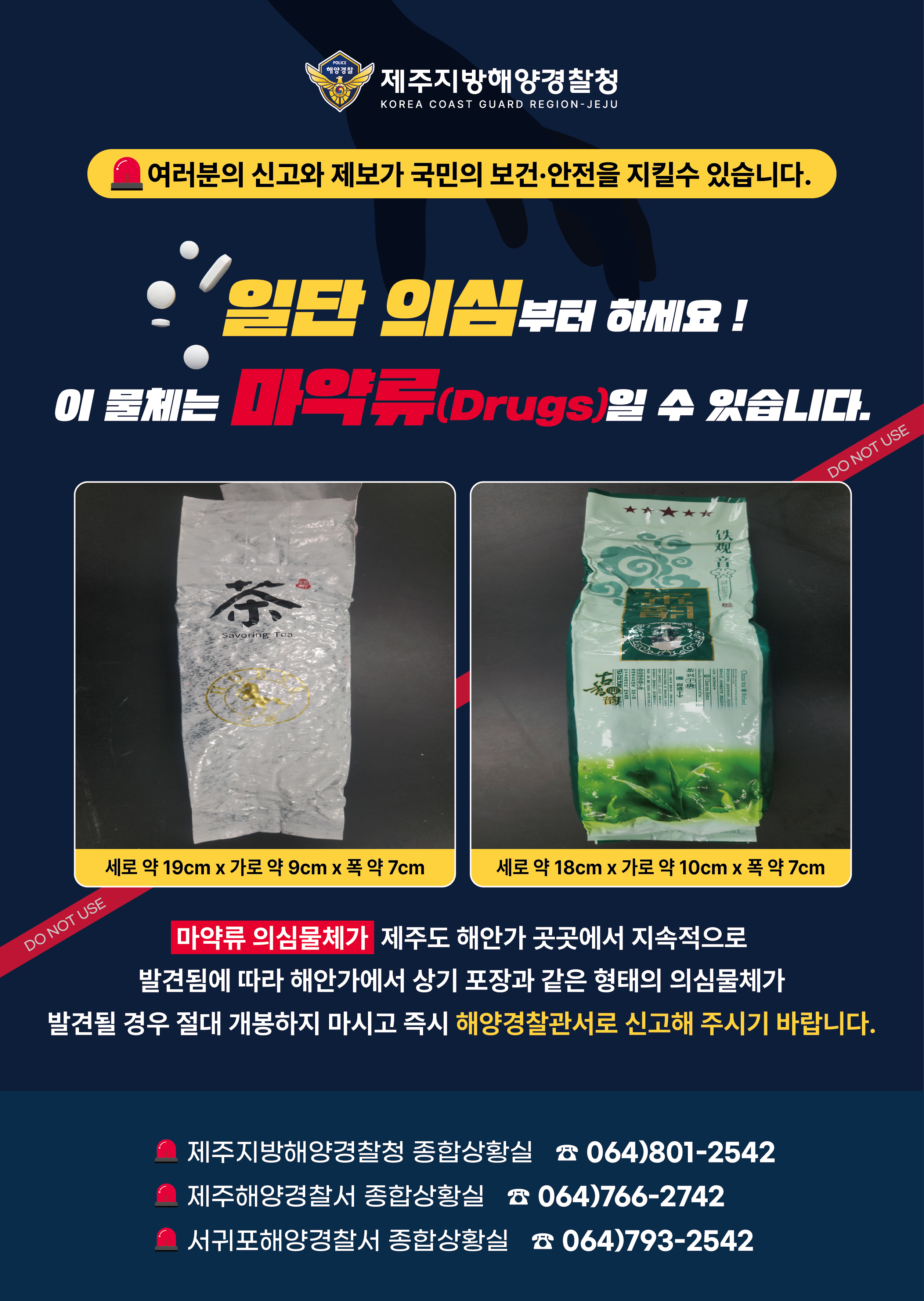 최근 제주해안에서 차 봉지로 위장한 마약류가 잇따라 발견되고있다고 합니다.